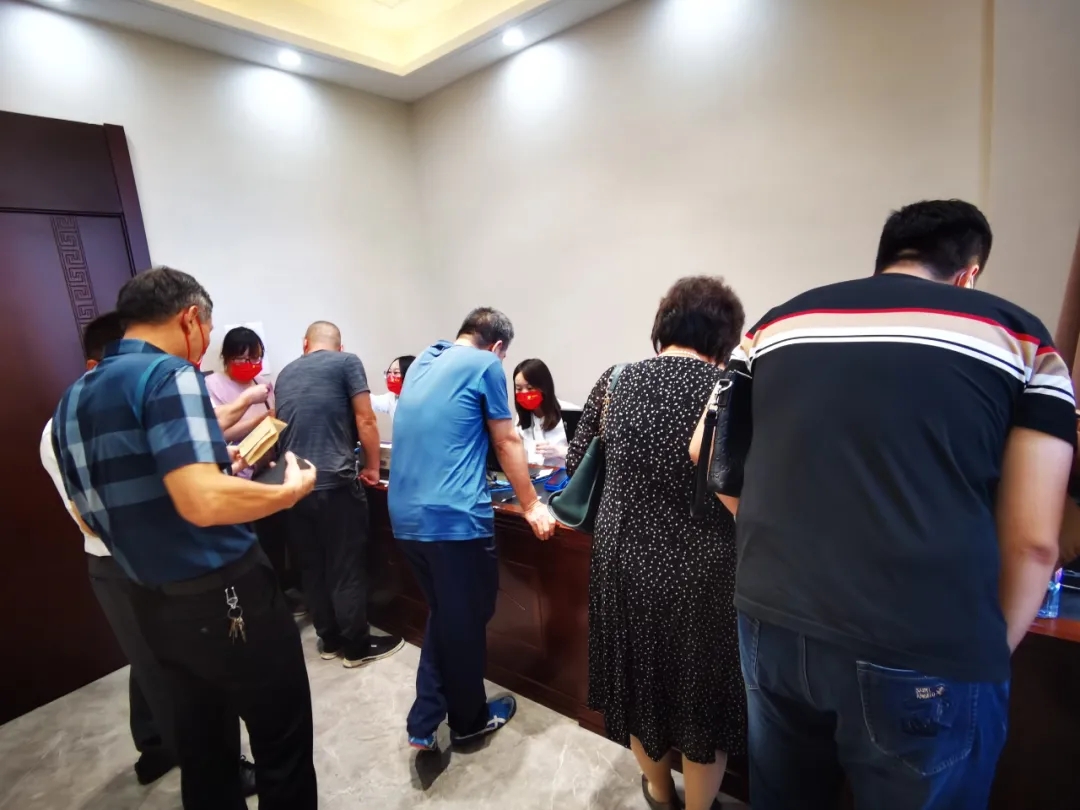 經過激烈的選房大戰,客戶們選到心儀的房子都井然有序的排隊等待著去交款,財務室和協議室里也是各種忙碌。