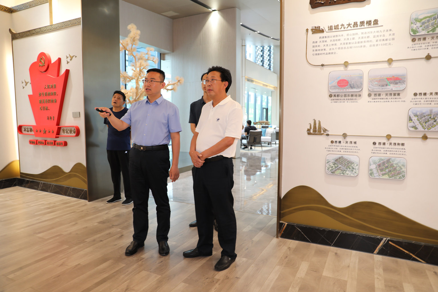 劉忠森對李書記的到來,表示熱烈歡迎。作為國賓府項(xiàng)目的締造者,劉忠森詳細(xì)介紹了國賓府及景觀示范區(qū)的規(guī)劃建設(shè)情況,并對國賓風(fēng)華每一處的景觀的匠心建設(shè)進(jìn)行解析。劉忠森講到,西建集團(tuán)的每一處作品,都凝結(jié)了西建人細(xì)致入微的品質(zhì)把控,我們唯有以“如切如磋,如琢如磨”精益求精的工匠精神,建好每一處工程,做好每一個(gè)細(xì)節(jié),篤行不怠,奮力書寫品質(zhì)時(shí)代的房企新篇章。